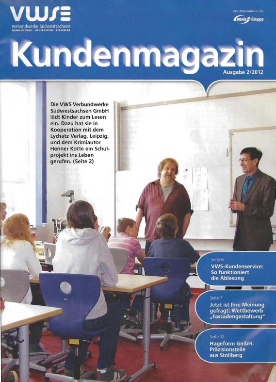 In Ausgabe 2/2012 des Kundenmagazins der Verbundwerke Südwestsachsen wird berichtet: die VWS Verbundwerke Südwestsachsen GmbH lädt Kinder zum Lesen ein. Dazu hat sie in Kooperation mit dem Lychatz verlag, Leipzig, und dem Krimiautor Henner Kotte ein Schulprojekt ins Leben gerufen.